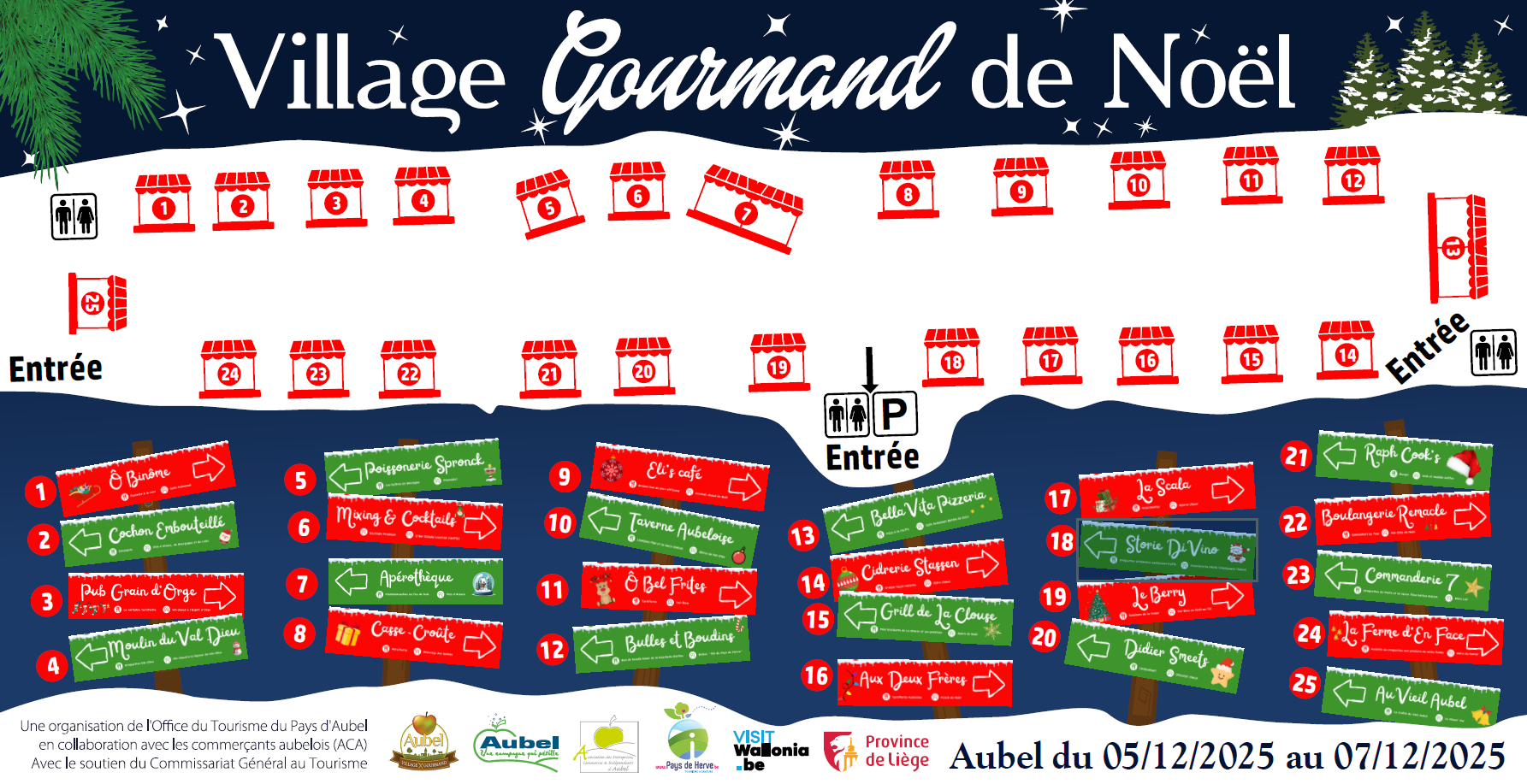 L’Office du Tourisme du Pays d’Aubel, en partenariat avec l’Administration communale et l’Association des Commerçants Aubelois (ACA), annonce la 11e édition du Village Gourmand de Noël, qui se tiendra du vendredi 5 au dimanche 7 décembre 2025, sur les places Nicolaï et Albert Ier à Aubel. L’événement mettra une nouvelle fois à l’honneur la gastronomie locale.